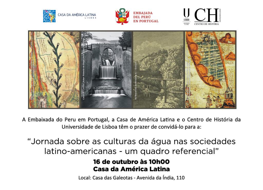 La Embajada del Perú en Lisboa, la Casa de América Latina y el Centro de História de la Universidad de Lisboa invitan a asistir a la "Jornada sobre las culturas del agua en las sociedades latinoamericanas", que se realizará el miércoles 16 de octubre.