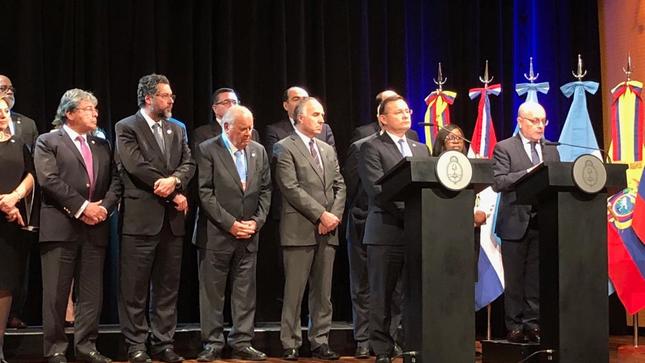 Los Gobiernos de la Argentina, Brasil, Canadá, Chile, Colombia, Costa Rica, Guatemala, Honduras, Panamá, Paraguay, Perú y Venezuela, miembros del Grupo de Lima, reunidos en la ciudad de Buenos Aires, expresan lo siguiente: