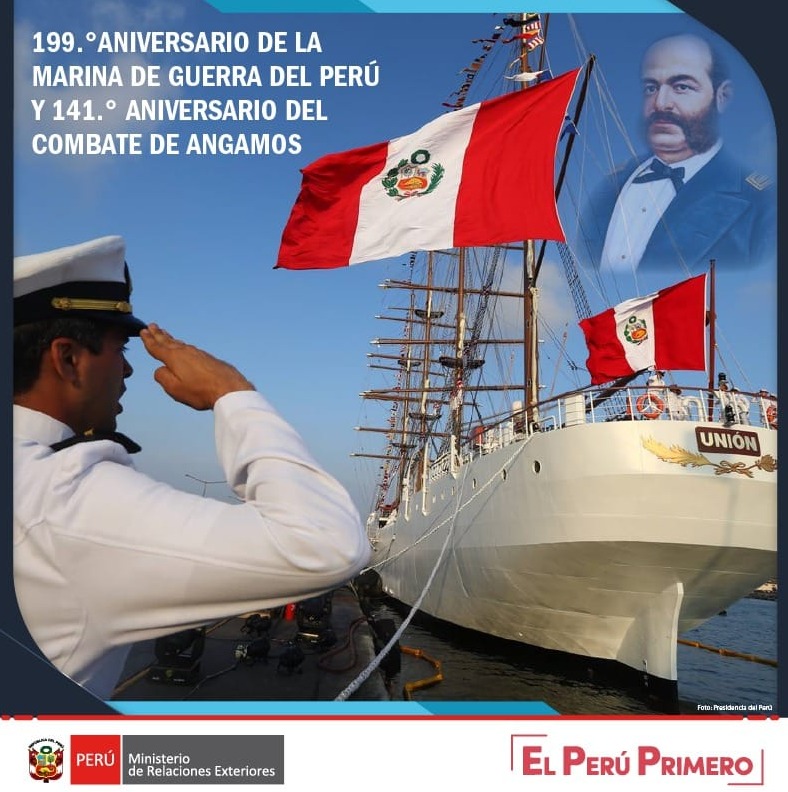 El día de hoy, conmemoramos el Combate Naval de Angamos, el cual tuvo lugar el 08 de octubre de 1879, donde se sacrificaron heróicamente el Gran Almirante del Perú, Don Miguel Grau Seminario, "el Peruano del Milenio", y la valerosa tripulación del Monitor Huáscar.